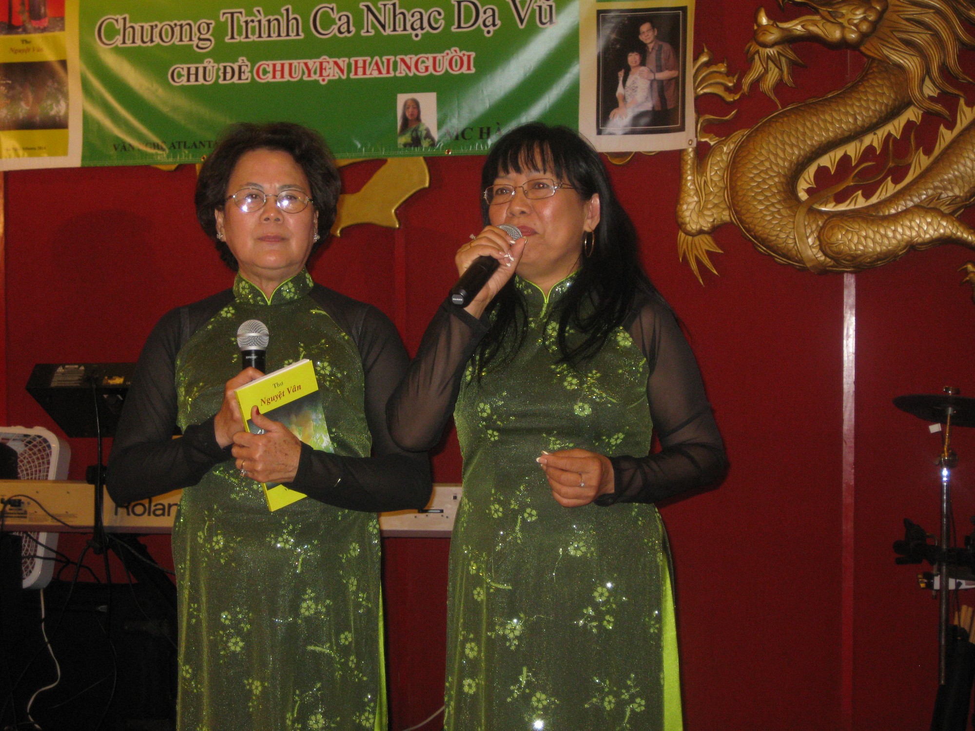Một buổi chiều thơ nhạc và dạ vũ do hai nhà thơ nữ VÂN HÀ và NGUYỆT VÂN tổ chức rất thành công với chủ đề CHUYỆN HAI NGƯỜI nhằm mục đích giới thiệu 2 thi phẩm CHÙM ME NGỌT của Nguyệt Vân và MỘT NỬA ĐỜI NHAU của VÂN HÀ trong không khí vui tươi và thân tình vào lúc 5:00 giờ chiều ngày 13-7-2014 tại nhà hàng Royal China Restaurant, số 3295 Chamblee Dunwoody Rd, Chamblee, GA. 30341, với sự hiện diện trên 250 người gồm quí vị quan khách, quí văn thi hữu, báo chí, thân hữu, bẳng hữu tại địa phương và thân nhân đến từ San Diego (CA), Houston (TX) và Florida đến tham dự.