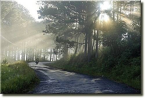 Ông nói thao thao bất tuyệt, mới đầu tôi còn nhìn chăm chú, xong trời từ từ tối dần, sương mù càng lúc càng dày đặc, cảnh vật không còn nhìn thấy rõ rệt. Không khí lành lạnh của vùng cao nguyên ru tôi vào cơn buồn ngủ không thể cưỡng được. Tôi mở choàng mắt khi cha tôi nói:
