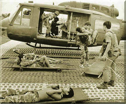 Người phi-công tủm-tỉm cười. Đám người xung quanh cũng cười theo. Thượng-sĩ trưởng đồn có tật gọi tất cả phi-công là Trung-úy. Sự thật phần lớn họ chỉ là những chuẩn úy. Một lần nữa cánh cửa khép lại và chiếc máy bay chậm-chạp bò ra cuối sân. Người thương-binh bắt đầu rên se-sẽ mỗi khi bánh xe vấp phải một viên gạch.