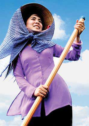 Các bạn trẻ có thể thắc mắc hỏi phần các bà thì sao, quí bà cũng làm những việc nặng nhọc như các ông. Mấy bà cũng cầm cày, đứng trục, làm vườn đào mương tát cá không thua đàn ông, mấy bà bảo vệ đầu tóc rất kỹ, lỡ khi bùn đất dính tóc, họ phải gội đầu và hong tóc rất cực khổ ( vào thời nầy chưa có máy sấy tóc ) chiếc khăn rằn cũng là vật chí thân của quí bà, thông thường họ chọn khăn rằn màu đỏ lợt vừa che đầu, vừa lau miệng vì các bà, các cô thời bấy giờ thích nhai trầu.