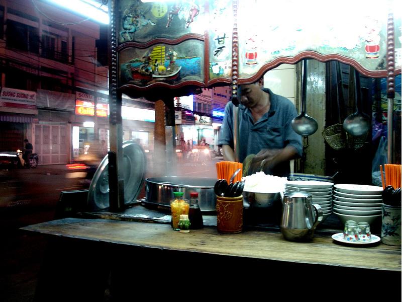 Tôi đã biết yêu từ năm 12 tuổi, hồi đó ở Việt Nam vẫn còn là tuổi của ngây thơ khờ dại. Tôi rất thích ăn mì của cái tiệm ở đầu đường nhà tôi do một người Hoa làm chủ, đứng nấu mì là một anh ba Tàu trẻ, thường thì mẹ dẫn tôi đi hay có khi tôi thèm thì xin tiền mẹ chạy đến tiệm ăn một mình. Dù đi với mẹ hay không, tôi đều thích đứng cạnh xe mì để nhìn ngắm anh Tàu trổ tài nấu mì, anh để một vắt mì vào thùng nước sôi và nhanh chóng vớt lên bằng một cái vợt lưới, bàn tay anh thao tác nhuần nhuyễn, hất tung vắt mì lên vài lần cho ráo nước và sau cùng hất vào tô, bao giờ cũng chính xác, không rớt ra ngoài. Xong anh bày lên những miếng thịt heo nạc thái mỏng còn viền màu đỏ vì đã được ướp xá xíu, một thìa tóp mỡ thái hột lựu, và một thìa củ cải mặn cũng thái hột lựu, rồi mới đến những cọng hẹ cắt khúc ngắn. Anh mở nắp vung thùng nước lèo, cả một mùi thơm bát ngát theo hơi khói bay ra, thuở đó trong mắt tôi thùng nước lèo to, sâu thẳm ấy là một công trình vĩ đại và kỳ bí như trò ảo thuật, vì chẳng biết anh Tàu nấu bằng xương thịt gì, bí quyết gì mà nước lèo thơm ngon thế? Có bao giờ tôi ăn tô mì mà chẳng húp hết nước sạch sẽ đâu! Khi thì anh Tàu bê tô mì ra bàn cho tôi, khi anh bận thì tôi tự làm lấy vui vẻ. Tôi thích ăn mì và yêu cả anh Tàu nấu mì, không biết vì anh trẻ đẹp trai vui tính hay vì anh là người đã nấu cho tôi những tô mì ngon? Tôi đến tiệm mì thường xuyên đến nỗi anh Tàu nhớ mặt tôi, có lần anh vừa vung vẩy biểu diễn hất vắt mì vào tô vừa cười cười với tôi : “ Hày, con nhỏ này là khách quen của bổn tiệm mà, để tao cho mày thêm vài miếng thịt”. Hôm ấy tôi ăn tô mì đặc biệt nhiều thịt, vừa sung sướng vì anh nhớ đến tôi, vừa buồn buồn vì anh gọi tôi bằng “mày” và xưng “tao”. Anh Tàu chẳng biết rằng con bé ranh này đang yêu anh, hôm nào không có tiền ăn mì, đi học về qua tiệm tôi đi chậm lại một chút để nhìn thấy anh rồi mới chịu đi nhanh về nhà, tương tư anh nên tôi đã nói với mẹ: “Lớn lên con sẽ lấy anh Tàu bán mì“. Mối tình đơn phương đầu đời có liên quan đến vấn đề ăn uống ấy chỉ tồn tại được một hai năm, không phải vì có vài lần tôi thấy vợ anh đứng nấu mì thay cho anh, là một chị mập ú, luôn luôn mặc áo sát nách để hở hai cánh tay béo mỡ, vừa nấu mì vừa xổ một tràng tiếng Tàu với hai đứa con nhỏ đang luẩn quẩn bên cạnh, mà vì càng lớn tôi càng có nhiều sở thích khác ngoài ăn mì.