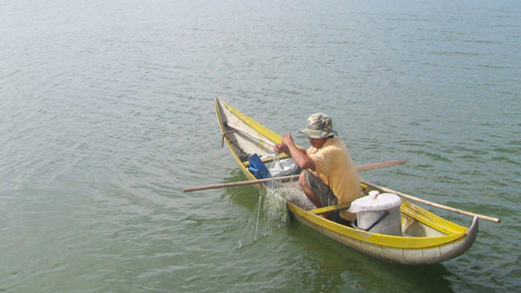 Khi đi thăm, mới chừng năm sáu lưỡi câu lại thấy dính cá to, con cá vùng vẫy dữ tợn, anh lừa thế cho nó lọt vào vợt rồi dỡ lên. Con cá chừng nửa kí. Thăm hết đường câu lại thêm ba con nữa. Khai trương đại lợi rồi đấy! Nguyên móc mồi tiếp cho đợt nhì. Anh còn ở xa đã thấy cá dính lưới, đến gở cá mà lòng vui khôn tả. Buổi chiều đó anh làm cử chỉ lịch sự, đem cá cho Bác Bảy, bác ba Câu, bác Năm và bốn nhà gần . Ai cũng cám ơn rối rít. Bác Bảy gái khuyên anh bán cá để có tiền xoay xài. Nguyên nói: