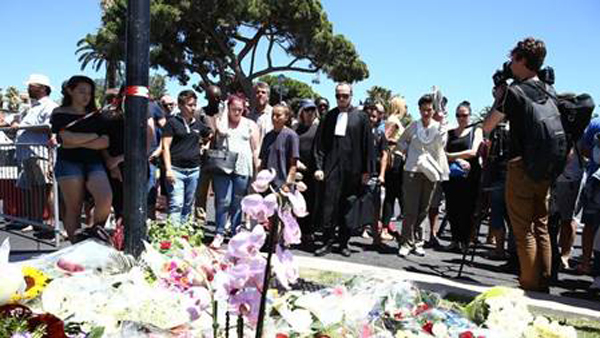Thật buồn, hai hôm nay con đường đã đặt đầy hoa, buổi tối, ánh sáng nến lung linh chia buồn cùng nạn nhân và nước Pháp. Bãi biển vui chơi sầm uất trở nên vắng tanh tạm thời đóng cửa để điều tra.