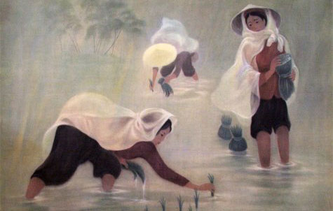 Không đợi anh Năm trả lời, chị chạy đến bờ đám mạ nhổ một mớ cỏ rũa sạch nhai và đấp chỗ vết thương do chuột cắn cho anh, giọng âu lo: